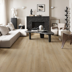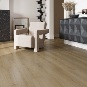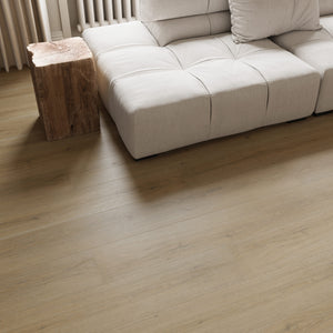 Embossage synchronisé effet chêne brossé, décor haute définition et traitement PU ultra-mat pour reproduire l'aspect et le toucher des plus beaux parquets.