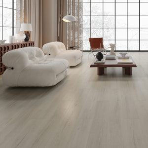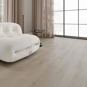 Embossage synchronisé effet chêne brossé, décor haute définition et traitement PU ultra-mat pour reproduire l'aspect et le toucher des plus beaux parquets.